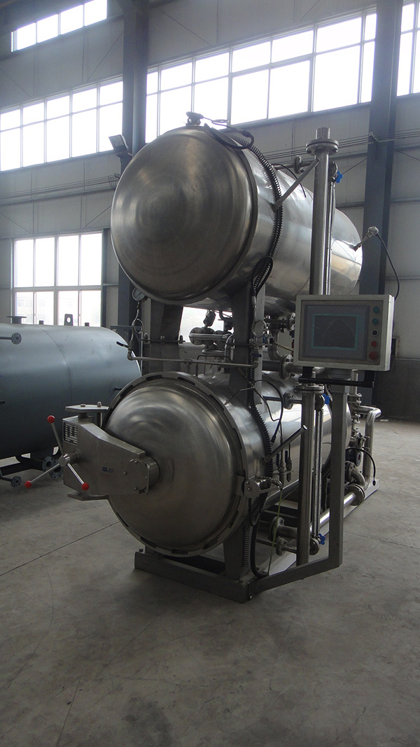 臥式殺菌鍋可根據(jù)不同產(chǎn)品設(shè)計(jì)水浴式殺菌、蒸氣殺菌、噴淋式殺菌三種方式。溫度、壓力、殺菌時(shí)間可分自動(dòng)控制和手動(dòng)控制。