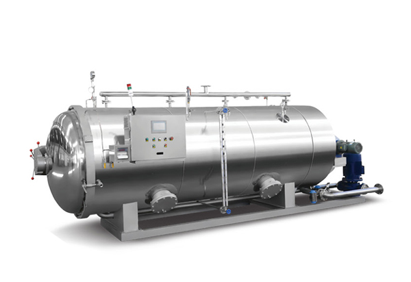 (1)、 熱水循環(huán)式殺菌:殺菌時鍋內(nèi)食品全部被熱水浸泡,這種方式熱分布比較均勻。