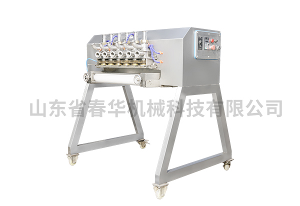 多頭夾心蟹排成型機是取代原有人工成型模式的一款新型設備,配合多臺泵浦機或者齒輪供料機,通過連接管道輸送、色漿組合成型、輥筒壓制而成,同時變頻調速,運行穩(wěn)定,花色分明,成型后蟹排直接進入隧道式蒸線,生產出來的產品表面光滑、順暢。