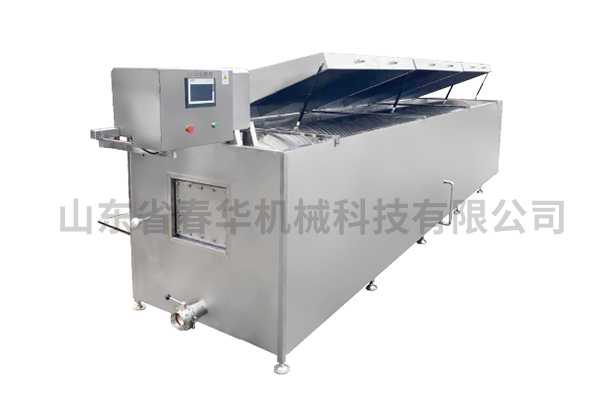 螺旋水煮線是我公司設(shè)計研發(fā)的一款新型灌腸類水煮裝置,將灌腸前端的腸膜系在牽引環(huán)上,驅(qū)動裝置驅(qū)動旋轉(zhuǎn)筒轉(zhuǎn)動時,滑塊上的導(dǎo)輪沿著螺旋導(dǎo)向板側(cè)壁轉(zhuǎn)動,從而使滑塊同時沿著導(dǎo)軌和螺旋導(dǎo)向板移動,進而帶動灌腸沿著螺旋導(dǎo)向板纏繞在旋轉(zhuǎn)筒上方便灌腸的輸送水煮,提高了灌腸輸送的穩(wěn)定性,箱內(nèi)設(shè)有加熱管道對水煮箱內(nèi)的水進行加熱,相比人工先將灌腸灌成一段一段,然后再進行蒸煮,極大的降低了人工成本,提高了生產(chǎn)效率。 |
